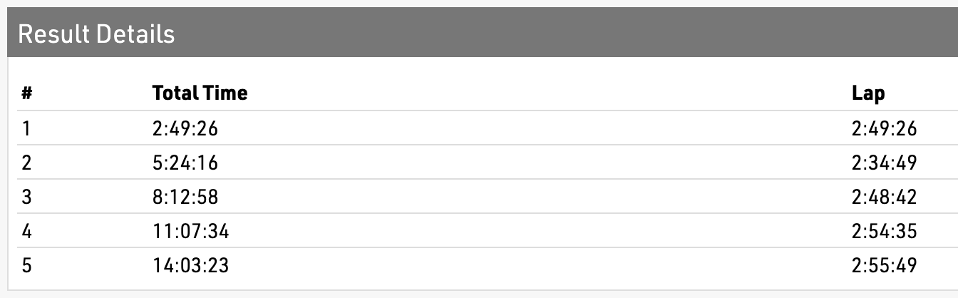 But instead of a play by play, I’d like to use this space to hit on a few of the more resonant moments and results that stood out to me personally. First of all, I have to say that the performance of the day in my opinion was Camille Herron’s absolutely insane 14h 03m finish. I will be the first to admit that I was sort of starting to write Camille off as past her prime. I even remember thinking that Hoka might have picked her up a year or two too late. But wow, I was clearly wrong. Camille still has that fire burning and she’s the best there is when it comes to runnable ultras. She really did have a masterful performance; hung tough all day long. Check these splits out (first lap is longer but final four are identical):
